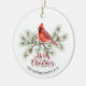 Adicione um toque festivo à sua árvore com este adorno elegante que apresenta um cardeal vermelho brilhante em galhos de pínus nevados. Um eterno de Natal e um presente de feriado.