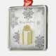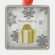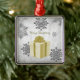 Desdecore sua árvore de Natal nesta temporada de festas com um Dourado Ornamento de Férias de Presente de Natal. O design de ornamento apresenta um presente de Natal embrulhado vibrante, adornado com cinzas e flocos de neve brancos contra um fundo de nuvens de cinzas. Itens adicionais de presentes e feriados disponíveis com este design também.