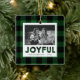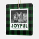 Este Enfeites de natal festivo apresenta um padrão de xadrez de búfalo verde junto com o espaço para uma foto na frente, assim como uma foto na parte de trás.