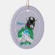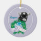 Pygora Goat - Ornamentos de Caprinos Feriados com um Flair Tropical. Lavanda com pacotes de presentes pastel e galhos de feriados com um ornamento de lavanda bonito. Cada design apresenta uma raça de cabra e atrás uma Terra de Férias Tropicais.