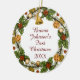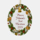 Uma coroa de fotos de bebês, coroa de natal com bagas e estrelas, ornamento para uso no primeiro ornamento de Natal.