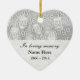 Ornamento de fotos de coração memorial | Eu amo a memória. Texto de script elegante com nome e datas personalizados. Imagem de fotografia personalizada atrás da etiqueta transparente.