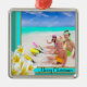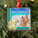 Flores da plumeria havaiana e cores aqua enquadram esse Enfeites de natal de modelo de foto. Personalize o texto conforme desejar. Olhar prateado, quadrado, tropical, o keepsasasaké pendura com uma fita vermelha.