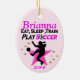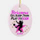 Coma, Dorme, Treina, Jogue Futebol! Seu jogador de futebol feroz vai marcar gols para este bonito Enfeites de natal rosa personalizado e datado. Gire seu talentoso jogador de futebol com esta maravilhosa design de futebol para inspirá-la e encorajá-la a sempre sair e fazer o seu melhor. Este presente de futebol é perfeito para os dias de aniversário, feriados ou qualquer ocasião e proporciona motivação e encorajamento contínuos. Seu jogador de futebol número 1 ficará entusiasmado com nosso ornamento único e original de feriado de futebol feminino.