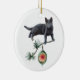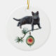 Um gatinho de cinza segura uma tosse verde com um ornamento de vidro vintage pendurado nele neste Enfeites de natal distinto. Personalize adicionando suas próprias palavras.