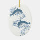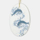 Ornamento oval cômico, com trabalho de arte gráfico de dois golfinhos nadando através de uma espiral de bolhas de água. Excelente na sua árvore de Natal ou como outros usos decorativos em volta da casa, como uma ventoinha ou pendurada na parede. Faz um presente excelente para qualquer um que ama a vida marinha e os golfinhos.