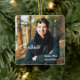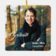 O ornamento quadrado de graduação em cerâmica é mostrado com uma amostra de foto de um formando com nome e data. Personalizar editar este item e alterar a foto de exemplo para a sua e alterar o texto para a sua. Imagem do stock freepik.com