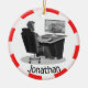 Vídeo - Ornamento de jogos com a estrutura de anel exterior vermelha e branca e texto personalizável na frente e no verso,