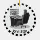 Vídeo - Ornamento de jogos com a estrutura de anel exterior preto e branco e texto personalizável na frente e no verso,