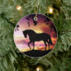Um presente de excelente para o amante do cavalo é um lindo ornamento com um garanhão preto sobre um fundo colorido.