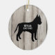 Pit Touro, ornamento ruidoso de madeira com silhueta fofinha contra fundo de madeira falsa. Personalize com o nome do seu cão e o ano. Você também poderia usar isso como um ornamento memorial, mas mudando ano para nascimento/morte. Outras raças e padrões estão disponíveis em nosso compro (veja o link de coleta para outras raças/cores) e me informe se você não consegue encontrar sua raça: info@lemontreecards.com