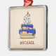 Ornamento De Metal 6 de Aniversário, 6 no Bolo Azul Doce