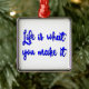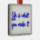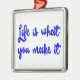 A vida é o que você faz. Um pensamento sobre a vida. Texto cursivo azul com efeito aflitivo.