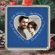 Criar um ornamento personalizado para um aniversário de 10 anos de casamento é fácil. Basta carregar uma imagem favorita e ela aparecerá no quadro em forma de coração. A praça é azul com uma bonito borda branca ao redor da foto, e tem as palavras: 10º Aniversário de Casamento, 10 anos de amor, 10 anos de alegria. Uma maneira adorável de celebrar juntos dez anos de casamento.