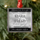 Celebre o aniversário do casamento de 25 prata com este ornamento comemorativo! As letras esbeltas a preto e branco com um confete hexagonal sobre fundo de folha prateada acrescentam um toque memorável para esta ocasião especial e um marco extraordinário. Personalize com nomes de casais, datas de casamento e mensagens de parabéns. Design © W.H. Sim. Mais informações em zazzle.com/expressionsoccasions