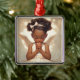 Imagem que mostra um jovem anjo negro com uma coroa na cabeça, ajoelhado em oração. O anjo está vestindo uma coroa delicada e parece estar profundamente rezando com seus olhos fechados e mãos amarradas. A imagem exude um senso de inocência e espiritualidade, capturando um momento de reflexão tranquila. As cores da imagem são quentes e úmidas, somando-se à atmosfera pacífica e serena. O cabelo do anjo flui e sua expressão é de devoção. Esta trabalho de arte transmite um senso de fé e pureza, fazer-a uma imagem pungente e bela. Uma Pintura Digital De Uma Menina Com Uma Coroa Na Cabeça. Uma Menina Com Uma Coroa Rezando. Uma Pintura De Uma Menina Rezando. Uma pintura de uma garotinha rezando com anjos. natal, anjo de natal, menina negra, cabelo natural, anjo, anjo negro, oração de anjo, eboni, anjo preto, anjo preto, anjo de natal preto