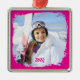 Crie seu próprio ornamento de recorde de quadrado de fotos para o Natal. A foto cobrir uma forma quadrada de pincel esmagado. Adicionar texto para criar um presente personalizado. Altere o fundo rosa quente para uma cor que corresponda à sua foto.