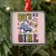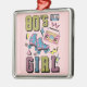 Ilustração colorida com estilo Memphis com design de texto e skate de rolo, caixa de boom, cassete e formas geométricas com "anos 80 Rapariga"