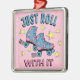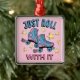 Figura retrorativa com o design de texto "Apenas rodar com ele" e estrelas coloridas e decoração do skate rolo