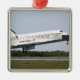 Aproximações de Descoberta de Ônibus Espacial na pista no Centro Espacial Kennedy destacadas com asfalto.