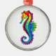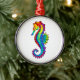 Articulação artificial, brilhante, arco-íris, cavalo de mar poligonal sobre fundo branco. Tatuagem brilhante.