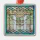 ornamento premium quadrado com uma imagem de intrincado vidro corado em cor rosa, azul e verde. Veja toda a coleção de ornamentos Roaring 20s em TOUCHES ESPECIAIS | Seção Favoritos para festas.