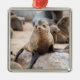 Um ornamento cerâmico com a imagem de um lindo foca bebê sentado numa rocha.
