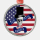 Funny orgulhosa, patriótica design de bandeira americana, com um divertido crânio gótico, que veste o chapéu do estilo Abraham Lincoln, e uma estrela vermelha, branca e azul e listra a bandeira da América, com texto para a América Deus abençoe dizendo.