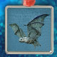 Esta é uma imagem de vintage de um morcego voador de tons azuis. Tem uma aparência tridimensional e é colocado sobre um fundo de vários blues. Veja minha loja Art by MAR para combinar produtos com este design.