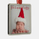 Elegante ornamento de fotos de bebê de Natal com um belo verso bíblia sobre Jesus em tipografia vermelha cursiva. Para nós, uma criança é nascer. Isaiah 9:6. Um lindo presente de natal fotografado para bebês com uma foto de cheio sob a escritura religiosa escrita em vermelho.