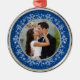 A fotografia deste primeiro Enfeites de natal de fotos Juntos de Natal (forma redonda) é fácil de personalizar. O brilho azul não tradicional parece design com moldura prateada e flocos de neve faz deste um elegante primeiro Natal junto com ornamento. Para alterar a foto, use as opções de personalização. Para alterações mais abrangentes no ornamento, incluindo a alteração do tamanho e/ou posicionamento da imagem, use a opção personalizar. Você pode gravar a parte de trás desses ornamentos quando você os receber.
