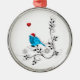O Bluebird a vestir o capô dos Papais noeis está a ver um coração! Ornamento em estilo metálico.