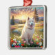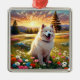 Cão Samoyed sentado em um prado de flores. Puzzles, planejadores, cadernos, enfeites com este design em minhas lojas.. Muitos desenhos de animais de estimação e paisagens em minhas lojas. Adicione este design a outros produtos. Adicionar texto.