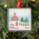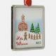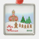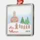 Uns enfeites de natal do divertimento para os professores que caracterizam uma cena da neve da escola com escola do pão-de-espécie, professor do pão-de-espécie, e estudantes do pão-de-espécie no recreio coberto de neve. As árvores da árvore e do evergreen de Natal espanaram com neve à direita da escola. Personalize com nome e o ano do seu professor.