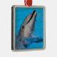 Cabeça de golfinho-gargalo (Tursiops truncatus) com boca aberta na água azul