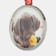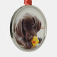 Ornamento De Metal Chocolate Labrador Com Pato De Brinquedo