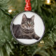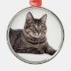 Retrato de um gato-do-cinza-riscado sentado sobre um fundo branco