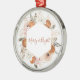 Adicione um toque de festas feito a partir da natureza à sua árvore com este ornamento, com uma coroa macia de fatias de laranja secas, florais de aquarela, samambaias e pinheiros. No centro, "Feliz e Brilho" é escrito em elegante caligrafia, enquadrado por um hexágono geométrico moderno. Um sotaque adorável para comemorações de feriado, este design combina encantos rústicos e botânicos numa paleta aconchegante sazonal. Coordena com peças correspondentes na coleção Citrus and Spice Holiday.