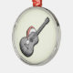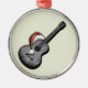 Uma guitarra clássica vestindo um chapéu de Papai Noel. Preto e branco com desenho vermelho (chapéu) vetorado de caneta e tinta, parece um corte de madeira, em t-shirts, cartas e presentes.