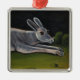 Ornamento De Metal Coelho de Cinza Longa Pulando Sobre Campos