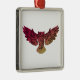 Esta design é o contorno de uma coruja com um gradiente de cor vermelho a bege e e a silhueta de um dentro de árvore.