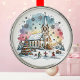 Bonito igreja e capela de aquarelas brancas, árvore de Natal e crianças brincando no Enfeites de natal de neve.