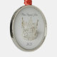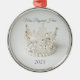 Christmas ornament is shown in a round shape with a lovely silver crystal and pearl crown.