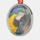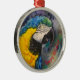 Uma pintura aquosa de uma Macaw azul e amarela. Felizes feriados! na selva, lindos natais exóticos, pássaros na árvore de natal.