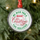Adicione este design personalizável aos seus Enfeites de natal nesta temporada de Férias. Design apresenta a frase "Desejamos a você um Feliz Natal em vermelho e verde. Na parte inferior, você pode personalizar com seu nome, nome de família ou o que quiser.