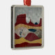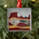 Uma paisagem abstrato com cores e texturas únicas mostrando uma cena do deserto com um sol azul ascensão e um cacto em tons de vermelho, cinza, bege e azul.