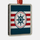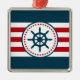 Design náutico com decoração das rodas de vela em forma redonda com estrelas sobre fundo listrado vermelho, azul e branco