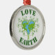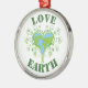 Ornamento personalizado do Dia da Terra que apresenta o planeta Terra em um coração e espirais.