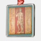 Um ornamento prateado com uma imagem de Dionísio, deus do vinho, fazer de vinho e loucura ritual, com uma taça de uvas, colocada em vermelho entre duas urnas decorativas em ouro. Veja toda a coleção de Ornamento Toga nos TOUCHES ESPECIAIS | Seção Favoritos para festas.