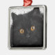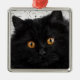 Rosto preto impressionante de gato persa com olhos âmbar. Fotografia com efeitos digitais aplicada.